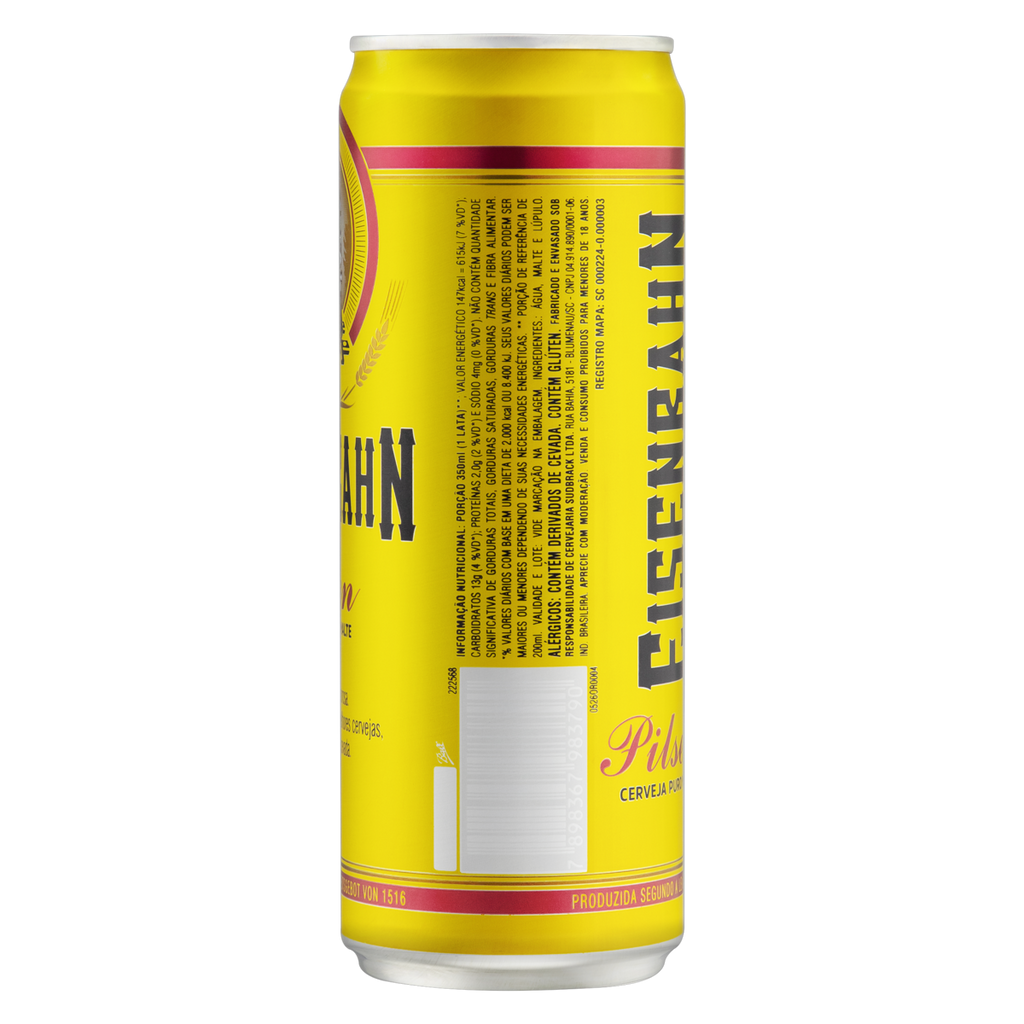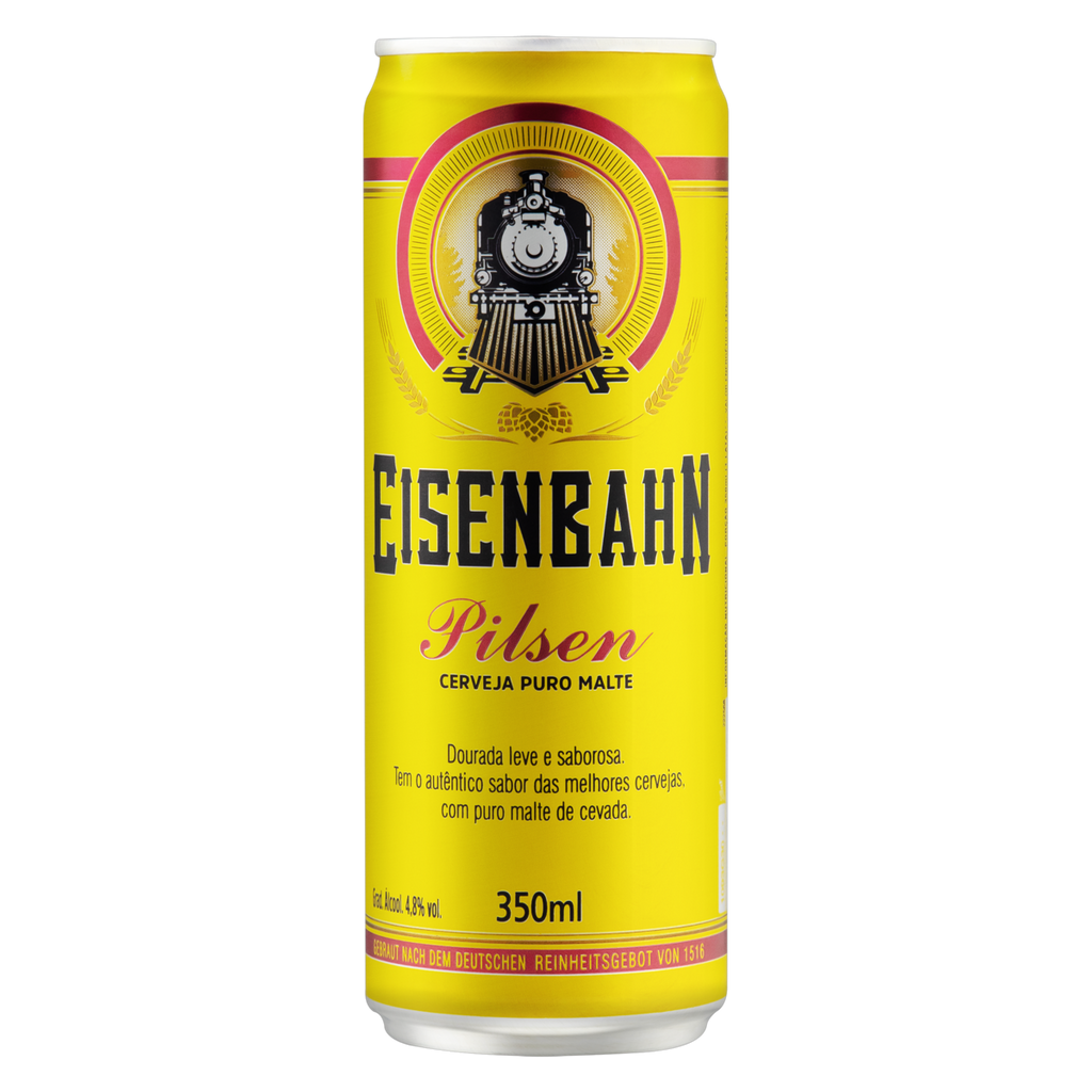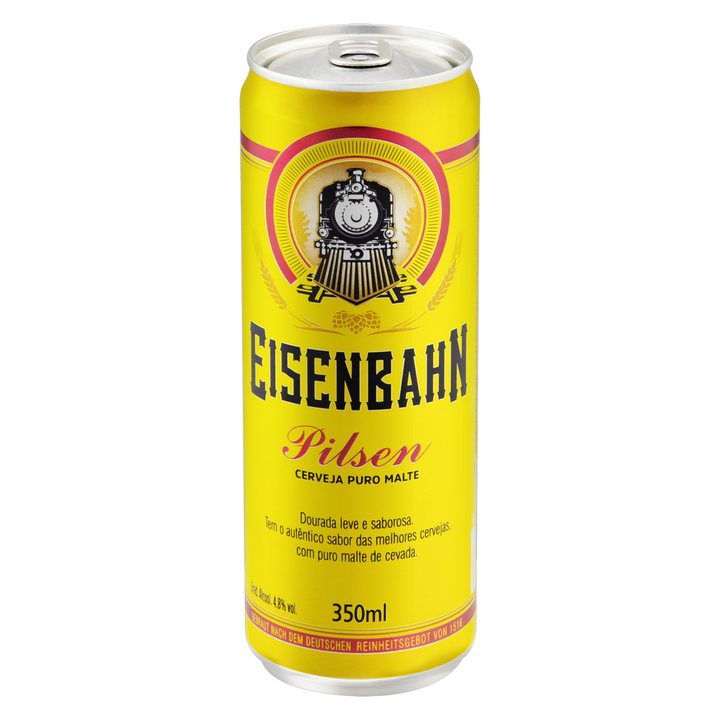 A Eisenbahn Pilsen Lata 350ml é uma cerveja puro malte leve e com amargor na medida certa, ideal para ser apreciada bem gelada. De baixa fermentação e com teor alcoólico de 4,84%, a Eisenbahn Pilsen é o rótulo mais vendido da marca no Brasil. A cerveja possui cor dourada, aromas de malte e lúpulo e oferece um equilíbrio excelente entre o amargor e o doce. Harmonize a sua Eisenbahn Pilsen com frutos do mar, peixes e queijos. Fundada em Blumenau, a Eisenbahn é uma cerveja brasileira que tem alma alemã. Todas as cervejas produzidas pela fábrica seguem à risca a Lei Alemã da Pureza.