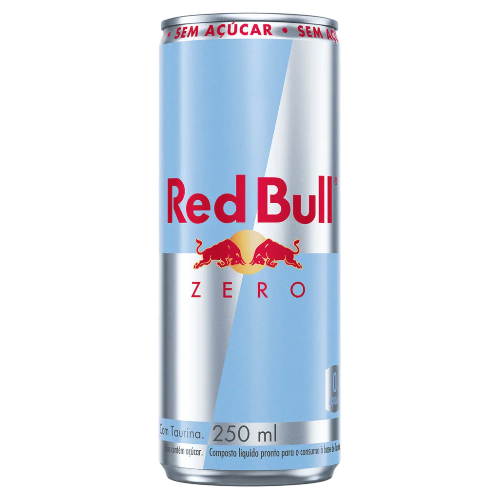 Bebida energética Red Bull Energy Drink Zero com fórmula sem açúcar, desenvolvida para fornecer energia e aumento de concentração sem calorias adicionais. Contém cafeína e outros ingredientes característicos da marca, proporcionando efeito estimulante e sensação de disposição. Lata de 250 ml, indicada para consumo gelada ou quando for necessário um impulso extra de energia.